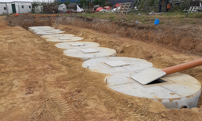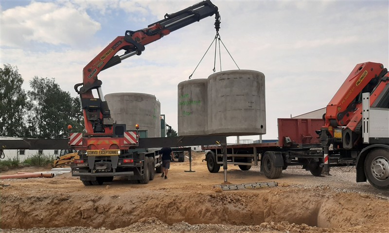 Pose de 5 citernes 20.000 l jumelées pour former une citerne de 100.000 litres.